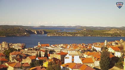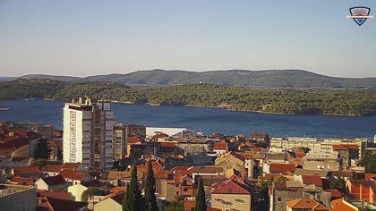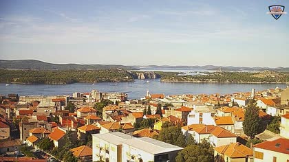 Panorama de Šibenik desde una cámara instalada en la calle Put Gimnazije. La imagen actual de la cámara está disponible en la página web externa.