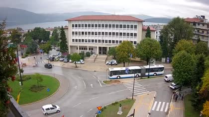 Vista en vivo del edificio del tribunal en la Plaza Olímpica desde una cámara instalada en la oficina de A. Katsouri y D. Germanos Katsouri. La imagen actual de la cámara está disponible en la página web externa.