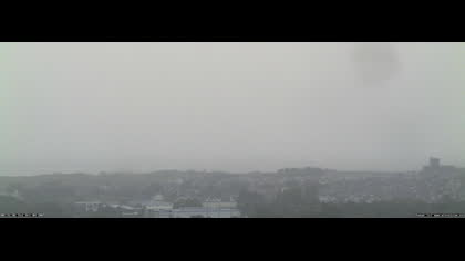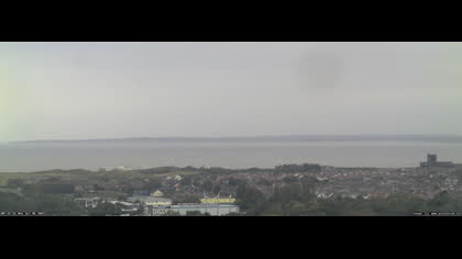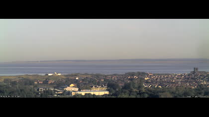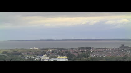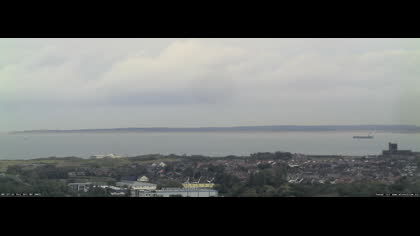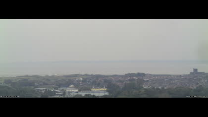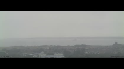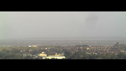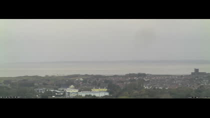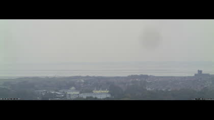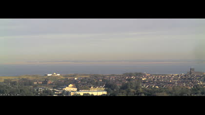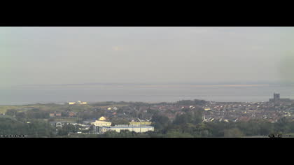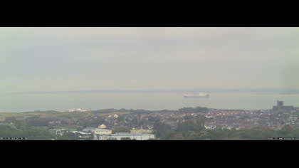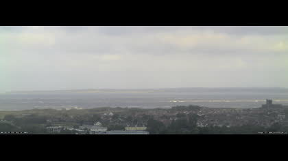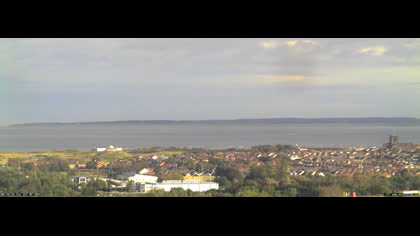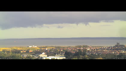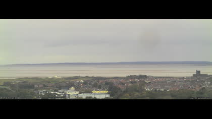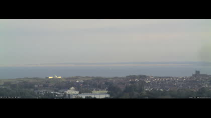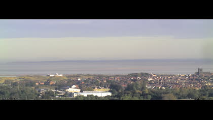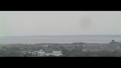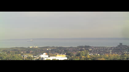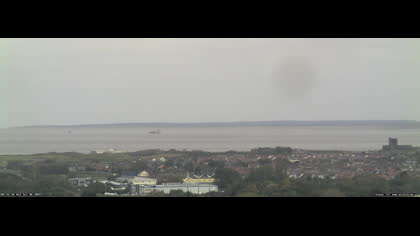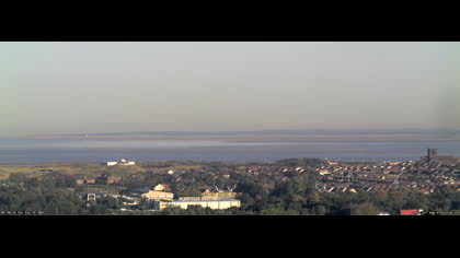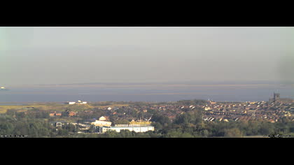 Una vista de la ciudad y el puerto desde el faro de Bidston en Bidston Hill. La imagen actual de la cámara está disponible en la página web externa.
