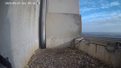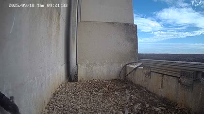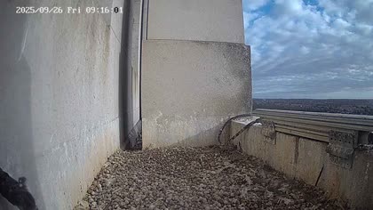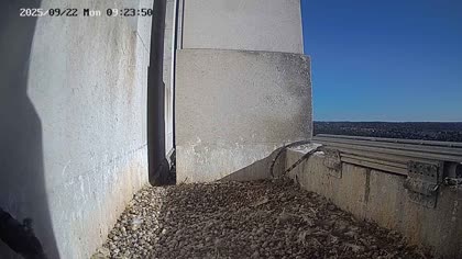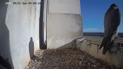 Las cámaras están ubicadas en el nido del halcón en la Torre Parkinson de la Universidad de Leeds. La imagen actual de la cámara está disponible en la página web externa.