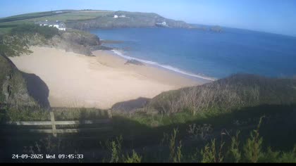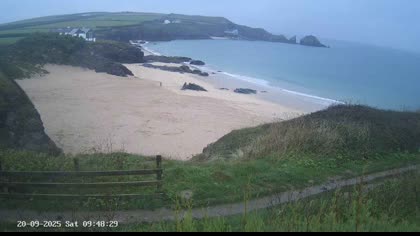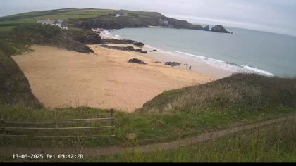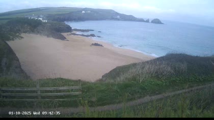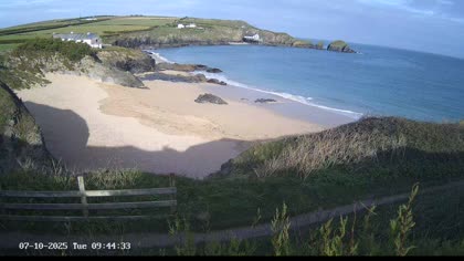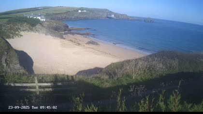Vista en vivo desde el campamento hacia Long Cove Beach en Mother Ivey's Bay. La imagen actual de la cámara está disponible en la página web externa.