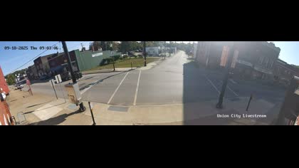 Vista en vivo de Market Street desde una cámara instalada en la Autoridad Municipal de Union City. La imagen actual de la cámara está disponible en la página web externa.